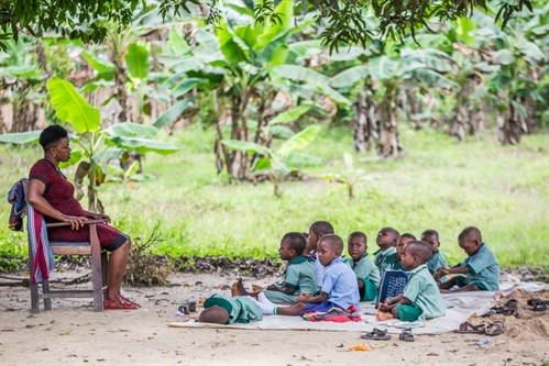 Όπως τα παιδιά του νηπιαγωγείου Abuator που κάνουν μάθημα κάτω από ένα δέντρο μάνγκο. Σε ολόκληρη τη χώρα, ακόμα και στις περιοχές του νότου που παράγουν πετρέλαιο, οι εκπαιδευτικοί παλεύουν να κάνουν μάθημα στα παιδιά χωρίς να έχουν ούτε τα βασικά από την κυβέρνηση.