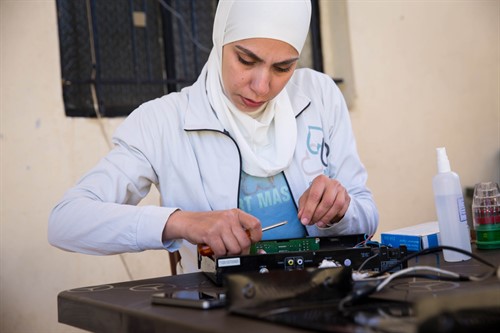 H Bushra, είναι Σύρια πρόσφυγας στο Λίβανο που συμμετείχε σε πρόγραμμα ενδυνάμωσης της ActionAid. Της αρέσει η επισκευή των ηλεκτρονικών συσκευών και ελπίζει να μπορέσει να δουλέψει σε αυτό, παρόλο που θεωρείται ανδρική δουλειά. Φωτογραφία: Celia Peterson/ActionAid