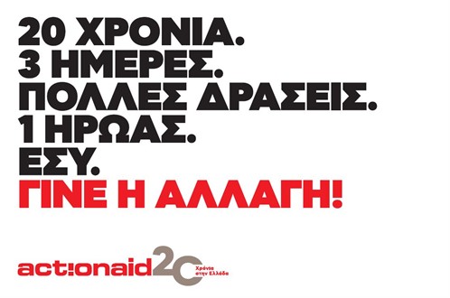 Η ActionAid συμπληρώνει 20 χρόνια δράσης στην Ελλάδα και μας καλεί να γίνουμε η αλλαγή που θέλουμε να δούμε στον κόσμο.